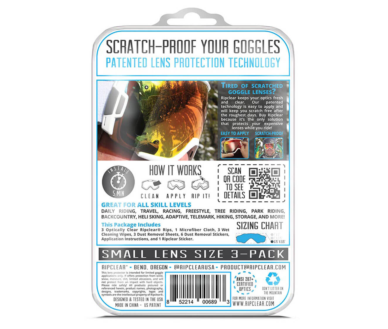 Our products are specifically designed to be crystal clear, durable, and affordable, so you can stock up for the season and protect your vision as well as your bank account. Protect your goggles so they can keep doing their job. Protect your gear with Ripclear.